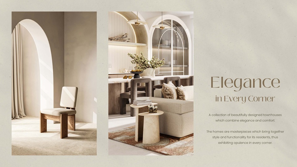 Elegant townhouses, An effortless blend of luxurious comfort, plenteous space, and architectural sophistication.